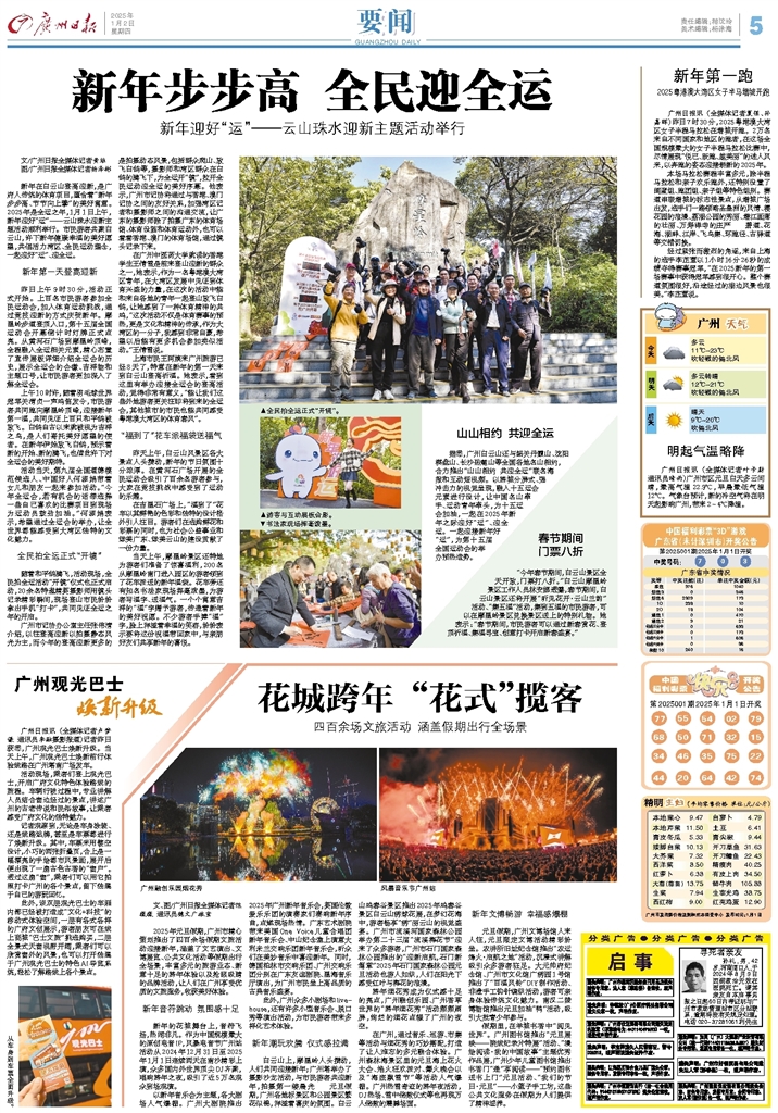 新年在白云山登高迎新,是广府人传统的体育项目,蕴含着“新年步步高、节节向上攀”的美好寓意。2025年是全运之年,1月1日上午,新年迎好“运”——云山珠水迎新主题活动顺利举行。市民游客共聚白云山,许下新年健康幸福的美好愿望,共倡活力湾区、全民运动理念,一起迎好“运”、迎全运。