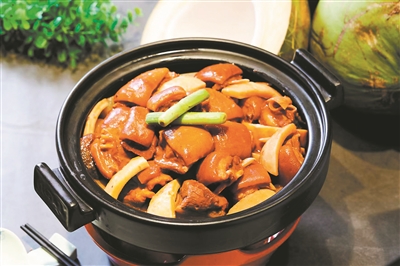 相比之下,新兴饭店最近新拿出手的“椰子羊”,则清雅而淡美。不得不说,敢以此做法来呈现羊肉,证明所用品质之上好。至清,则更显食材之优。厨师在焖羊的过程中加入泰国椰皇的椰青水和脆嫩香甜的椰肉,黑山羊软糯的口感加上清甜的椰青水,鲜甜可口,淡淡椰香,令人回味。