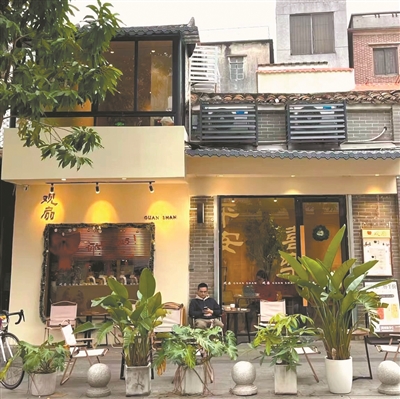 县正路位于东莞县署旧址正前方,曾经叫县前街,长150米,是莞城最具代表性的历史老街之一。过去,县正路两边主要是居民楼,充满着生活的烟火气,如今这里成为不少年轻人的“向往地”——他们在这里开咖啡馆、茶馆,以新业态、新思维为老街重新注入活力,让老街重新焕发生机。