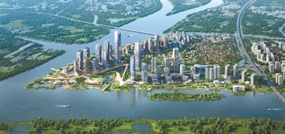 方案在整体空间结构上,引入“滨江走廊”和“人文主轴”。产业方面,提出了3+X的产业策略:金融半岛与金融城隔岸联动,推动大数据分析、智能投资等技术发展;AI科技试验场,以智慧城市、交通为主导,配以会展功能,促进技术交流与合作;数字制造研发港,致力于发展智能制造,生物医疗等产业;生态总部岛,引入高定制化的生态总部概念,满足不同客户的需求。
