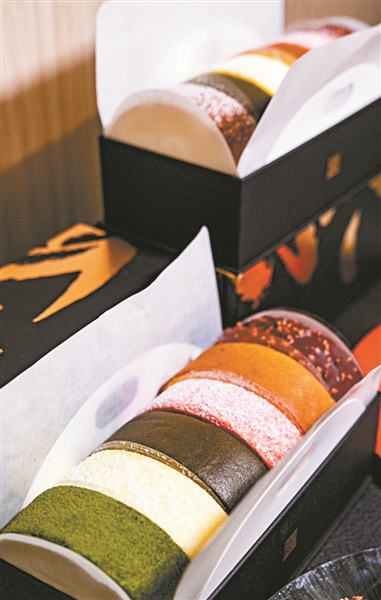 抹茶蛋糕卷、巧克力蛋糕卷,是下午茶的经典美味元素。颖琪说,他们在广州开店做鲜果蛋糕卷已经12年了,宇治抹茶蛋糕卷是他们家的常规款,抹茶的香浓与蛋糕的香甜相互交织,形成了一种独特又不失清新的风味。