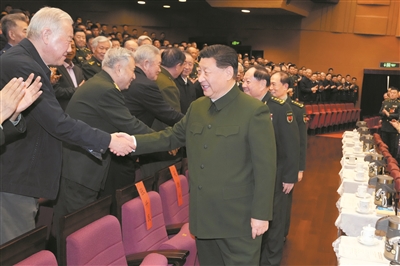 1月17日下午,中央军委慰问驻京部队老干部迎新春文艺演出在北京举行。中共中央总书记、国家主席、中央军委主席习近平观看演出,向在座的军队老同志,向全军离退休老干部,致以节日问候和新春祝福。 新华社发