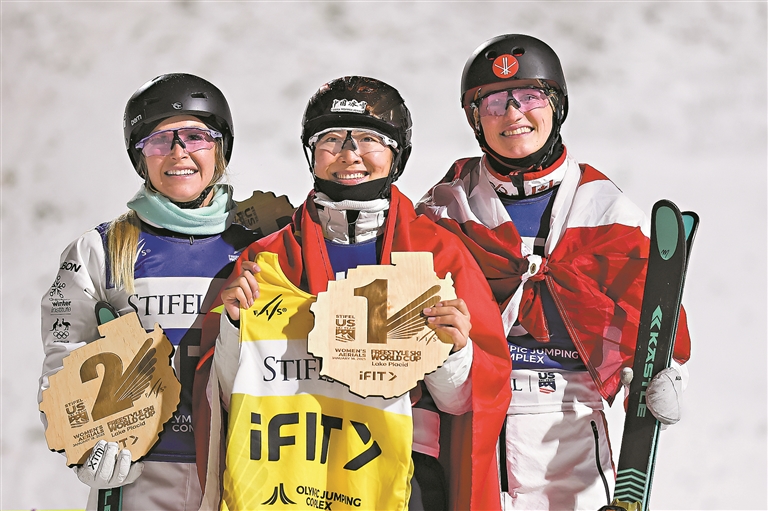今年的空中技巧世界杯普莱西德湖站比赛,中国队派出12名运动员参赛,其中两位北京冬奥会金牌得主徐梦桃和齐广璞备受关注。在女子个人项目的较量中,徐梦桃、许诺、邵琪顺利晋级决赛。