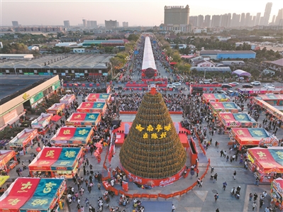 值得关注的是,作为陈村花市的地标桔塔,直径13.8米,高16.8米,16层的“全球最大年桔塔”今年同样“回归”,成为当地迎春花市地标。有趣的是,今年的桔塔还加上了祈福功能,游客可在桔塔下许下一年的美好愿望,祈求一年顺风顺水。