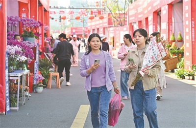 今年,迎春花市不仅有寓意如意吉祥的年花年桔,还汇聚了众多潮玩文创好物,更有多个饮食大品牌入驻,为传统花市增添了时尚与活力。值得一提的是,花市还专门设置了车展区,引进了多个知名汽车销售品牌参与,进一步丰富市民在花市的购买体验。