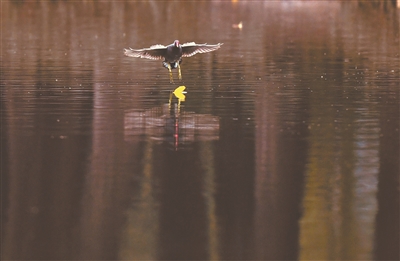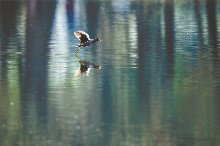 在亚艺公园,黑水鸡等水鸟也纷纷现身,在清澈的湖面上悠然自得,与周围的自然环境融为一体,为市民提供了更多亲近自然、感受生态之美的机会。