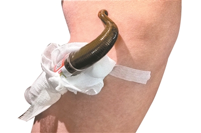 在实操训练环节,授课老师进行壮医水蛭疗法的示范演示及讲解,据了解,壮医水蛭疗法是传承了壮族千百年的民族特色技法,适用于痛风、静脉曲张、中风偏瘫、关节炎、肩周炎、颈椎病、风湿骨痛等,还可以用于外科手术创伤的康复,本疗法对于急性痛风疗效显著。