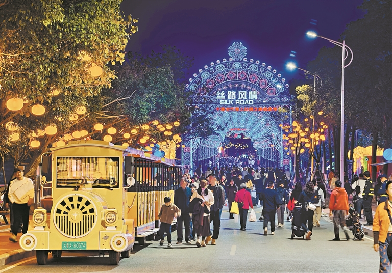 据悉,本次灯会以“光耀神州 华彩湾区”为主题,融合中国春节、传统彩灯“两大非遗”,融入大湾区城市和“一带一路”国际文化元素,运用现代科技与光影艺术,集中展现大湾区城市开拓进取、开放合作精神风貌。灯会占地面积870亩,展期自1月22日至3月30日,共68天,主游线路超过3公里,共布局218组灯景,使用彩灯超过10000盏,聚合了大湾区11个城市特色元素,还推出荧光舞狮、传统粤剧表演以及民俗表演等多个节目,是目前国内规模最大、灯组最多、展期最长的“超级灯会”。