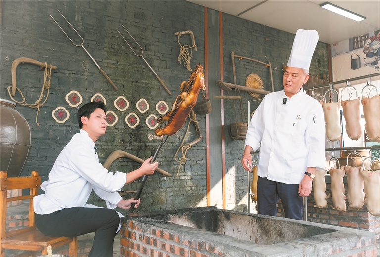 “我不仅学习爸爸的精湛手艺,更要接过爸爸肩上保护、传承并创新这一技艺的责任。”在黄铭德看来,只有在传承中求创新,在创新中守根基,广府烧乳猪才能随着时代的发展,不断焕发出新的生命力。