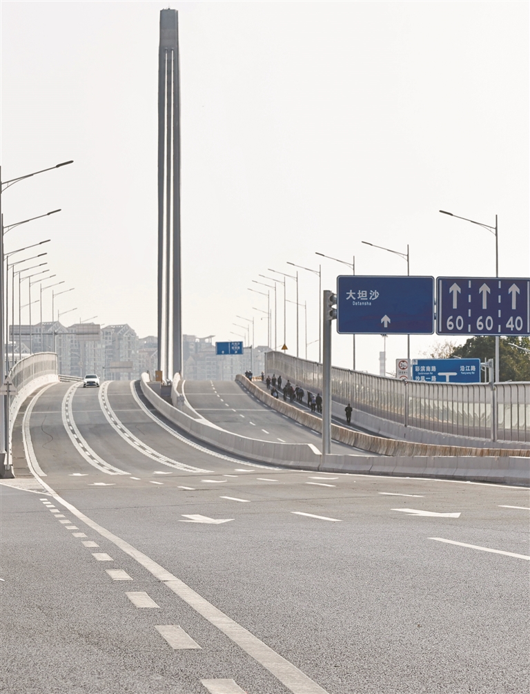 随后记者乘车体验,在路况顺畅的情况下,从佛山市建设大道上桥,2分钟就能抵达大坦沙岛。“的哥”陈师傅表示,自己常在周边运营,广佛大桥系统工程(一期)通车后,从金沙洲去往芳村会更方便,“不用向北绕行了。”