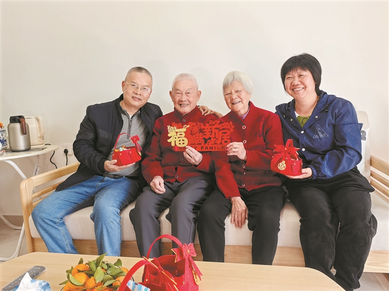 “新房入伙,就等过年了!”同样期待新年的还有邓崇谋、陈秀英夫妇。在陈海祥家隔壁楼栋,记者见到了89岁的邓崇谋和83岁的陈秀英夫妇。两位老人气色红润,穿着年味十足的红色新衣。
