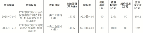 经广州市南沙区人民政府批准,广州市规划和自然资源局南沙区分局公开挂牌出让2宗国有建设用地使用权。