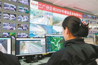为保障春运期间广大司乘人员安全、顺畅出行,二广高速在强化省际视频监控互联互通,做足应急物资储备和抗冰机械车辆保养等准备工作的基础上,进一步加强气象分析研判,增设视频监控、照明等设备设施,并加大智能巡查系统投入,不断增强抗冰应急抢险能力。