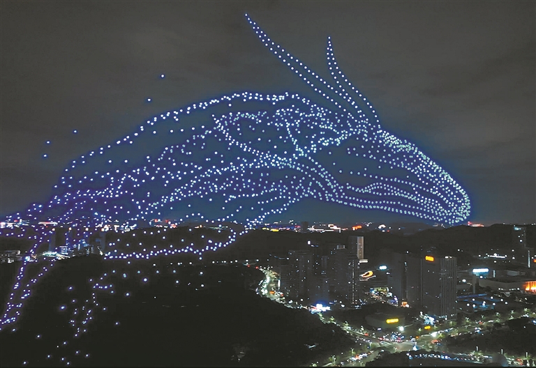 当夜幕降临,昏暗的夜空突然被万千荧光点亮,这不是传统烟花在绽放,而是一场科技与艺术交织的新型表演——赛博烟花。“赛博烟花”以无人机为载体,通过精准的集群技术控制,让无人机编队在夜空中变幻出万千姿态。春节期间,由大湾区企业提供的无人机编队表演在春晚重庆分会场、山东、河北、江苏、湖北等海内外多地精彩上演。