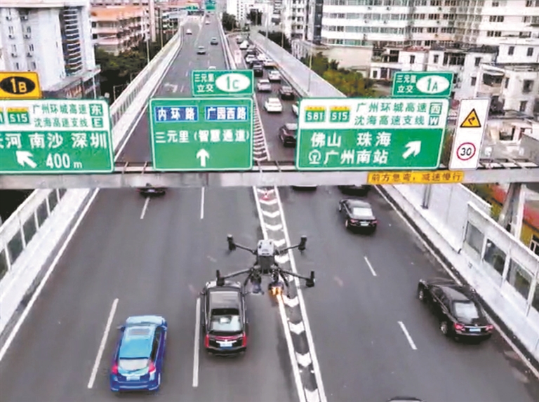 “在无人机巡检过程中,我们能够实时监控道路交通状况,遇到拥堵、事故等警情可及时安排警力处置现场,遇到违停、占用应急车道等违法行为可拍摄取证。”广州市公安局交警支队有关负责人介绍,广州交警通过打造全省首个系统内无人机交管应用管理平台,推动高速公路无人机融入公安交管“情指行”一体化运行体系。目前,已有11个高速公路路段公司试点开展无人机空中巡逻,无人机数量17架,覆盖里程40公里。春节假期,截至目前,广州交警出动无人机高速巡航近200架次,累计飞行时间近100小时。