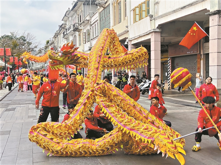 作为申遗成功后的首个春节假期,“非遗”成为江门今年春节年味游的关键词。龙狮巡游、第二十二届“圭峰之春”文化庙会、三江舞龙巡游活动……非遗和旅游融合互动,让市民游客感受到浓浓的“年味”,持续擦亮“江门三点三精彩之旅”品牌。