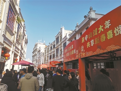 此次嘉年华活动设在孙文西路步行街,集合了中山的地道美食、国潮汉服、新春歌会等元素。从2024年开始,孙文西路所在的石岐街道提出纵深推进“古城活化”,将石岐打造成为粤港澳大湾区文旅新高地。