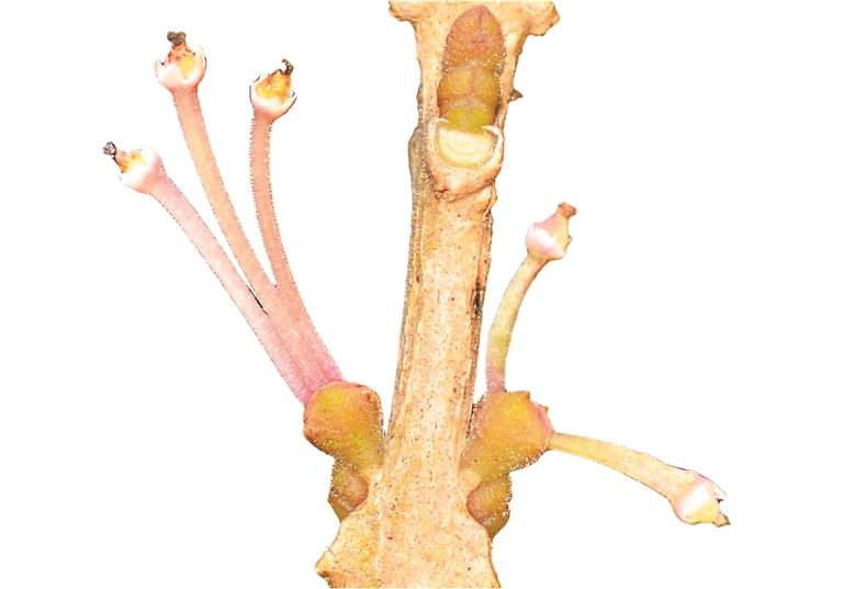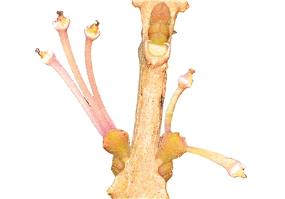 “我们对所有已发现的毛柄木樨野生植株个体均采集了枝条进行扦插繁殖,获得了一部分种苗。目前种苗生长状况较为良好。”中国科学院华南植物园园艺中心的工程师谢丹博士告诉记者,之后还需对根系发育及生长状况均较为良好的种苗进行练苗和定值处理。“由于木本植物生长较为缓慢,离长成可能还需要一定的时间。当前,我们可以通过它的野外照片先一睹花朵‘芳容’。”