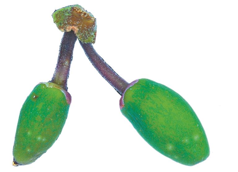 为了寻找这一珍稀濒危植物,2023年2月,宁祖林带领植物园引种保育团队前往毛柄木樨模式产地进行考察,同时携带模式标本彩色打印照片,走访调查周边村民,以寻找它的踪迹。经过系统调查和细致辨识,团队最终寻找到了与模式标本叶形极为相似的植株,并相继在9月份和10月份采集到具花和果实的标本。