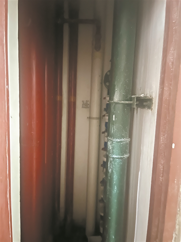 广州日报讯(全媒体记者肖欢欢、周伟良摄影报道)过去一年来,芳村花园小区9号楼12楼的住户一直饱受电表房渗水问题的困扰。“老人小孩出门怕摔倒,楼道墙面瓷砖起泡脱落,电梯运作也容易短路。”一位该楼层住户告诉记者。