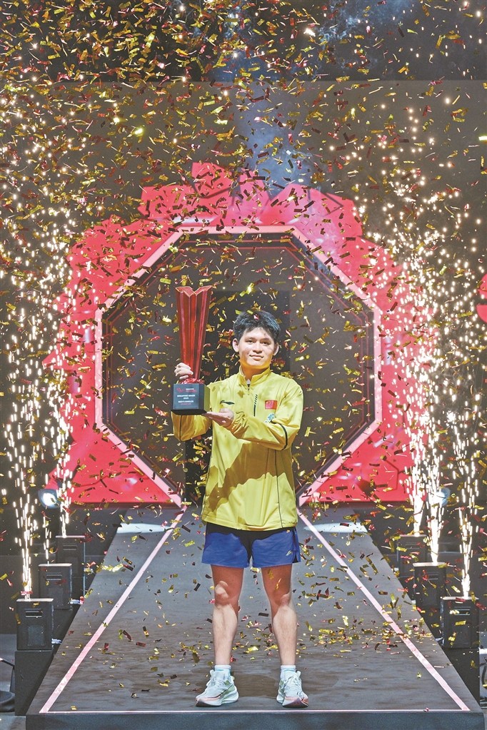 广州日报讯 (全媒体记者 杨敏)WTT新加坡大满贯男单冠军昨晚出炉,中国队19岁主力林诗栋以总比分4比2击败队友梁靖崑,成功封王。加上混双和男双两项冠军,林诗栋荣膺新加坡大满贯三冠王。这个男单冠军为他带来2000个世界排名积分,他将在本周公布的最新一期排名中超越队友王楚钦,首度登顶男子世界第一。
