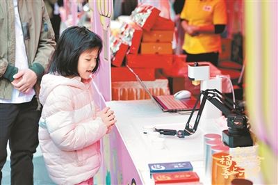 喜迎元宵节,怎能少了猜灯谜?600盏灯笼高高挂起,上千条灯谜随风轻摇,市民们纷纷“请战”。身着汉服的演员穿梭在现场,市民或是猜灯谜,或是与卖货郎对诗互动,完成任务后开心领奖。