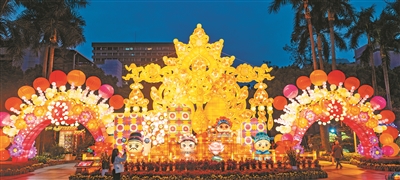 正月十五这天吃元宵,晚上出门赏花灯(彩灯),是许多市民群众的例牌活动。在广州多个地方,各具特色的元宵灯会已陆续亮灯。