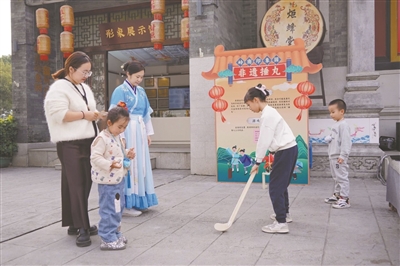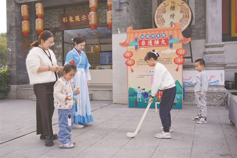 在岭南印象园,市民游客可以开启一场穿越时空的奇妙之旅,参与一系列精彩纷呈的国风活动。本次游园会以六艺“礼、御、书、乐、射、数”为灵感,精心打造了多个不同场景的互动游乐点与打卡点,包括木射、捶丸、投壶、蹴鞠、踢毽子。在这里,每一步都能邂逅历史的韵味,每一处都能发现文化的惊喜,都能在打卡过程中,亲身感受古人的智慧与生活情趣。