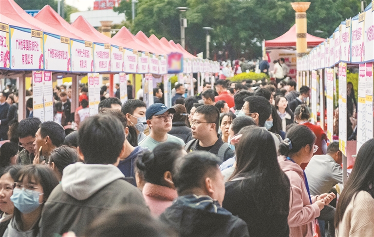 招聘会吸引了不少求职者前来应聘。广州日报全媒体记者廖雪明 摄
