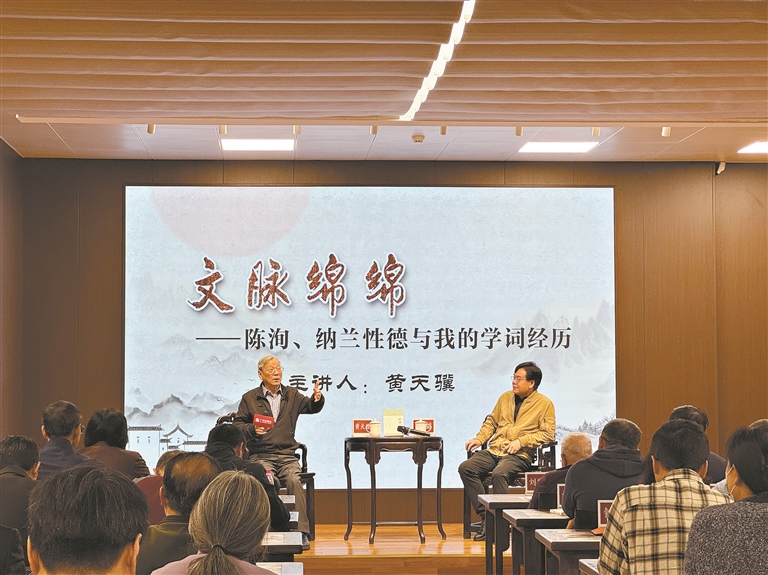 作为本次活动的重要环节,“广雅讲坛”于活动当天正式开讲。中山大学中文系教授、《广雅》顾问黄天骥以“文脉绵绵——陈洵、纳兰性德与我的学词经历”为题,结合自身学术生涯,讲述了其自身堪称戏剧性的学词经历。