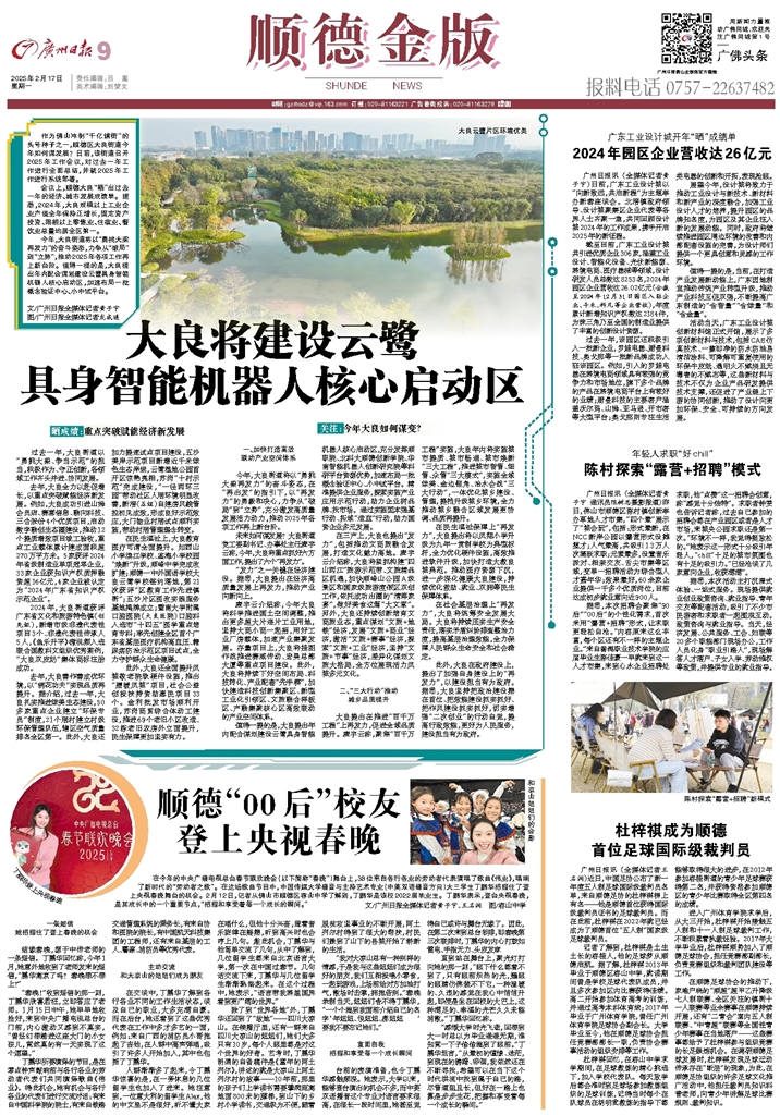 - 大良将建设云鹭具身智能机器人核心启动区 作为佛山冲刺“千亿镇街”的头号种子之一,顺德区大良街道今年如何谋发展?日前,该街道召开2025年工作会议,对过去一年工作进行全面总结,并就2025年工作进行系统部署。 会议上,顺德大良“晒”出