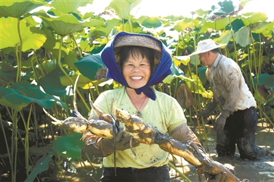 新垦莲藕是国家地理标志产品、全国名特优新农产品、广东省名牌产品、出口优质农产品,并顺利通过国家绿色食品认证和有机农产品认证,成为南沙区智慧绿色农业发展带动乡村振兴的样板和典范。网上有这么一句梗:哪吒体重40斤,39斤的反骨,还有一斤的莲藕。据统计,去年万顷沙镇,莲藕种植面积约1300亩,产量达2300吨!如果按此计算,南沙每年生产的莲藕足够“制造”400多万个“哪吒”!