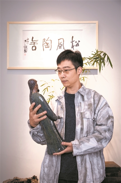 面对艺术与商业的取舍平衡,李松阳以坚守艺术为重。他将工作室取名“松风陶舍”,颇有郑板桥的风骨神韵。为此,他专门创作了一尊郑板桥的陶艺品,身体修长,手持古扇,目光深邃,凝视前方,风骨尽显。这件作品被他视为得意之作,摆放在工作室最显眼的位置。