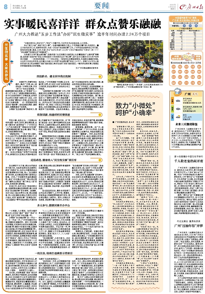 - 致力“小微处” 呵护“小确幸” ■ 广州日报评论员 庹亚男 “家事国事天下事,让人民过上幸福生活是头等大事。”习近平主席在2025年新年贺词中体现了一如既往的人民立场。 致广大而尽精微。千家万户的事,说到底是一些千头万绪