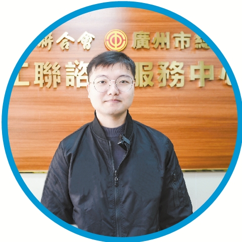 香港工会联合会(以下简称香港工联会)在广州的咨询服务中心(以下简称中心),墙上整齐地悬挂着一面面锦旗和一张张照片,每一件物品都承载着一段动人的故事,蕴含着一份感激之情。叶文悦这位说着一口流利普通话的香港青年便是中心的一员。他对办公室里每一件物品背后的故事都如数家珍,对中心的业务更是熟稔于心。