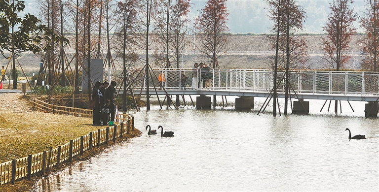 “作为距离市区仅6公里的田园湿地景点,我最喜欢湿地旁的那段堤路,它不高不低,恰好可以满足人们上去散步发呆,或者坐下来喝杯咖啡,俯瞰整片地区的风景。”陈小姐从佛山开车来这里体验,感觉找到了松弛感。