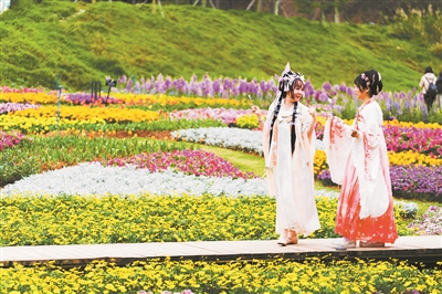 彩虹洒落人间——郁金香与百花绘就一幅斑斓渐变的梦幻花毯,带游客穿越至莫奈花园。阳光下,朵朵鲜花熠熠生辉,自带绝美滤镜,轻松解锁朋友圈最靓美景,美出新高度。