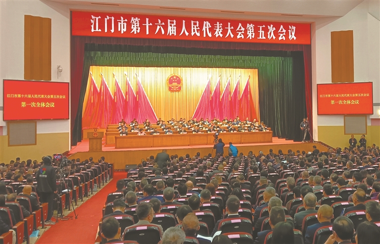 江门市十六届人大五次会议26日上午开幕,江门市市长吴晓晖作政府工作报告。报告回顾总结了2024年及过去四年的发展成果和经验,并为2025年江门经济社会发展制定了新的目标,指明了新的奋斗方向。新鲜出炉的政府工作报告引发了代表委员热议,提振人心。