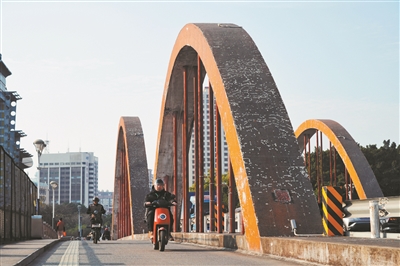 2月25日上午,家住禅城的刘先生手拿相机,足足在彩虹桥一带转悠了一个多小时。随着快门声不断响起,他的相机里很快装满了许多座“彩虹桥”的模样。望着如今马赛克已部分脱落且桥身逐渐褪色的彩虹桥,刘先生多次让记者帮忙,拍下他和彩虹桥的合影,以此见证他与这座桥的深厚情谊。