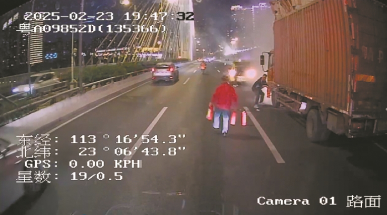 叶玉辉安全停好车后一看,发现货车车头与车厢连接处正冒出浓烟,车底还有火光闪烁。“海印桥上车水马龙,如果任由火势蔓延,极有可能危及其他路过的车辆,造成严重后果。”叶玉辉心感情况紧急,向车上乘客解释:“前面的货车有火情,麻烦各位乘客稍等一下,我要去‘救急’!”