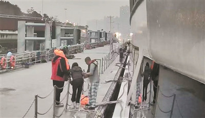 “我下去!”徐熙洋果断套上救生装备,顺着绳梯下水靠近落水者。冰冷的江水瞬间浸透工装,他强忍刺骨寒意,一把抓住落水人员手臂,在其他船员的接应配合下,于6时45分将落水人员救起。