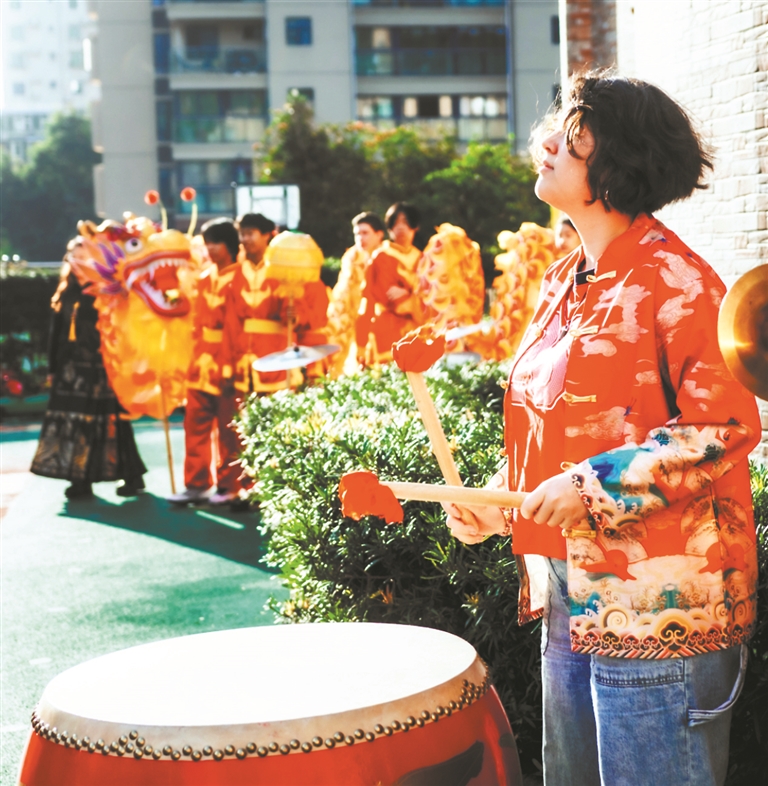 对一家人来说,每逢节庆总是一次领略岭南广府文化的好机会。刚过去的春节,孩子们的学校举办了迎春表演,其中重头戏之一是舞龙表演,微海秋担任了队里的中国鼓的鼓手。她说,打中国鼓也要有技巧,自己在课余时间花了不少时间练习,同伴们也很努力,“男生是看着视频学习舞步的。”采访中,瓦莉娅开开心心地向记者展示了手机里的一张照片。照片中,女儿神采飞扬、昂首击鼓,当妈妈的为女儿由衷感到骄傲。