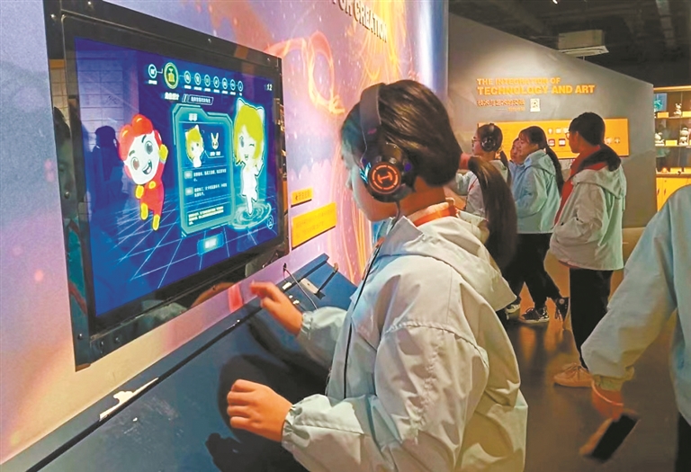 3D建模、灯光特效、配音拟音……作为全国首家数字动漫科普馆,咏声动画科技馆则给大小观众带来“人人都是创作艺术家”的新体验。据悉,咏声动画科技馆以动漫文化为主要元素,馆内设置多个互动装置,通过动画制作科普与制作体验,让观众以角色体验的视角,感受数字动画的魅力与乐趣。“咏声动画科技馆采用了沉浸式主题参观,运用情境、故事线、氛围、节奏打造沉浸式展览空间,尤其注重观众在观展时的互动性、实践性、知识性、趣味性体验。比如在展厅内设有AI动画制作装置,观众可以一分钟体验制作属于自己的数字动画;同时还可以体验动捕技术,通过采集观众的身体表演数据,转化为角色运动三维动画,观众能切身体验数字动画科技的奥秘。”咏声动画科技馆馆长李莉莉介绍。此外,“猪猪侠”等经典IP也积极“携手”新兴技术,成为文旅新业态成果之一。