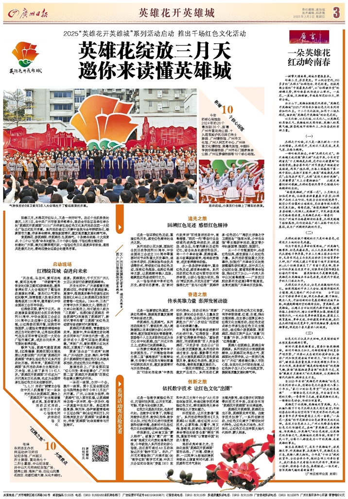 白云山下,英雄血脉随花汛涌动,“英雄花开英雄城”2025广州传承弘扬红色文化系列活动如约而至。十二个文化板块,如同十二组木棉花,编织起“英雄花开英雄城”的红色花环。