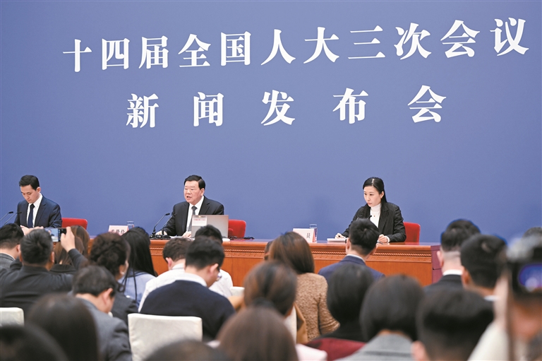 十四届全国人大三次会议4日中午举行新闻发布会,大会发言人娄勤俭就会议议程和人大有关工作回答了中外记者提问。