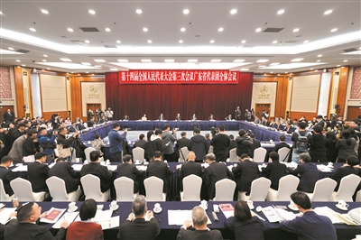 广州日报讯 (全媒体记者贾政、吴城华、何瑞琪、王楚涵、王纳、邓潇丽、魏丽娜 通讯员徐林、骆骁骅、李凤祥、祁雷、姚瑶、黄叙浩、陈伊纯、陈嵘伟)3月6日下午,十四届全国人大三次会议广东省代表团在住地举行全体会议,继续审议政府工作报告,审查计划报告和草案、预算报告和草案,来自107家境内外媒体的267名记者到会旁听。在发言环节,中外记者们受邀在会场内采访,近距离拍摄记录和报道代表们审议审查报告时的发言;在媒体提问环节,会场互动热烈、别开生面,到会记者纷纷举手提问。黄坤明、王伟中、张虎、郭永航、覃伟中、艾学峰、王雄飞等代表分别作答,分享履职收获,畅谈思考体会,从不同侧面介绍了全省上下深入学习贯彻习近平总书记对广东系列重要讲话和重要指示精神,锚定总书记赋予的使命任务,以走在前列的责任担当,推进中国式现代化的广东实践取得的新进展新突破、部署的新工作新举措。黄楚平代表主持会议。
