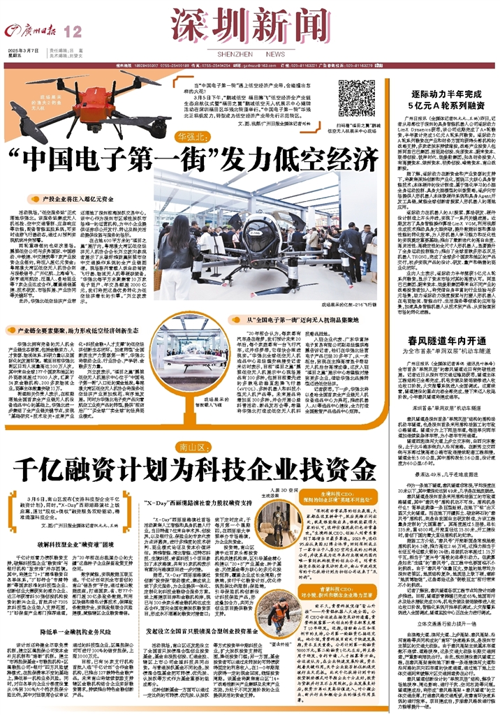 - “中国电子第一街”发力低空经济 当“中国电子第一街”遇上低空经济产业带,会碰撞出怎样的火花? 3月5日下午,“鹏城低空 福田腾飞”低空经济全产业链生态启航仪式暨“福田之翼”鹏城低空无人机展示中心揭牌活动在深圳福田区华强北