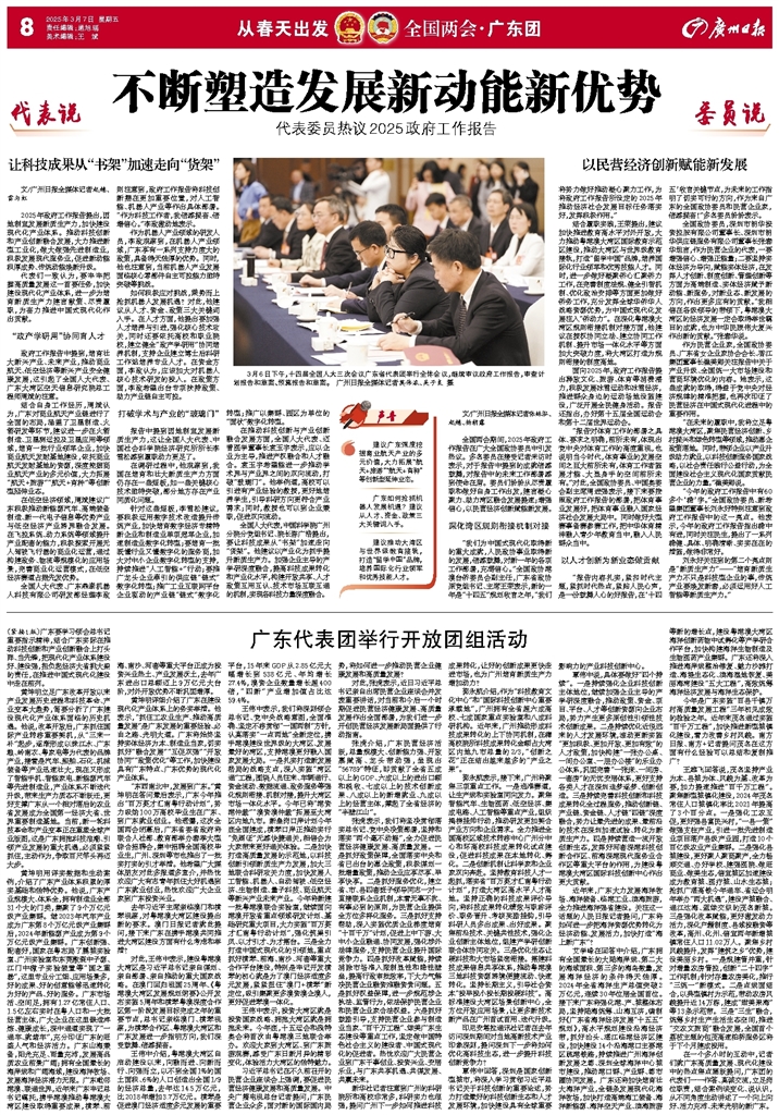 - 不断塑造发展新动能新优势 代表说 让科技成果从“书架”加速走向“货架” 文/广州日报全媒体记者赵越、雷与虹 2025年政府工作报告提出,因地制宜发展新质生产力,加快建设现代化产业体系。推动科技创新和产业