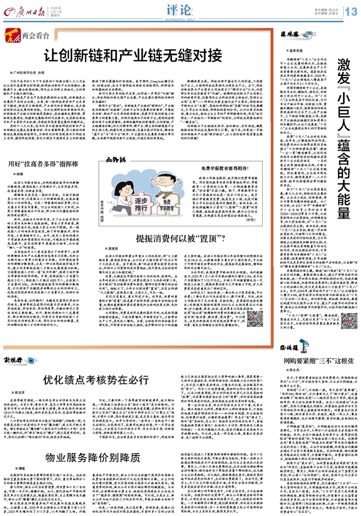- 让创新链和产业链无缝对接 两会看台 广州日报评论员 刘硕 习近平总书记5日下午在参加十四届全国人大三次会议江苏代表团审议时强调,抓科技创新和产业创新融合,要搭建平台、健全体制机制,强化企业创新主体地位,让创新链和产