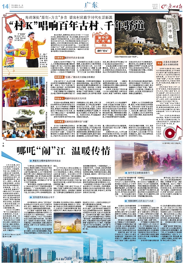 - 哪吒“闹”江 温暖传情 2月24日晚,由江门市委宣传部主办,江门市文明办、市教育局、市总工会、市残联、市义工联协办的“光影传情,温暖同行”《哪吒2》公益专场观影活动举行,活动邀请道德模范、身边好人、残疾人、劳模、教师等各